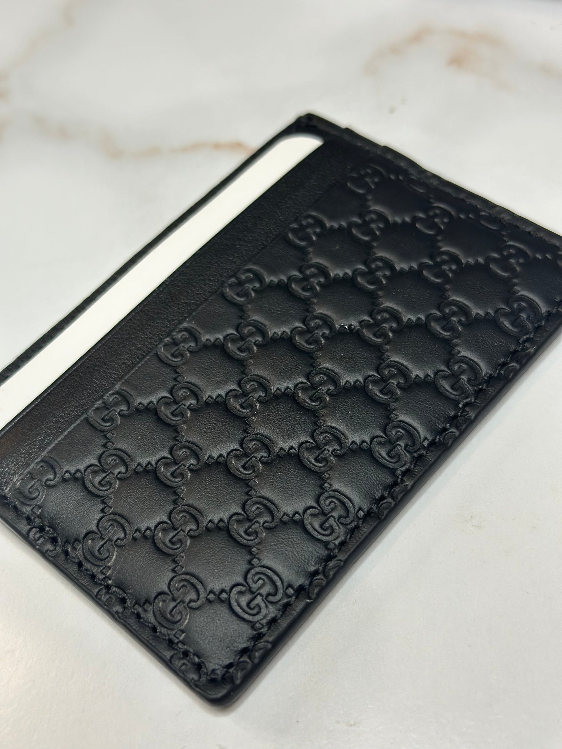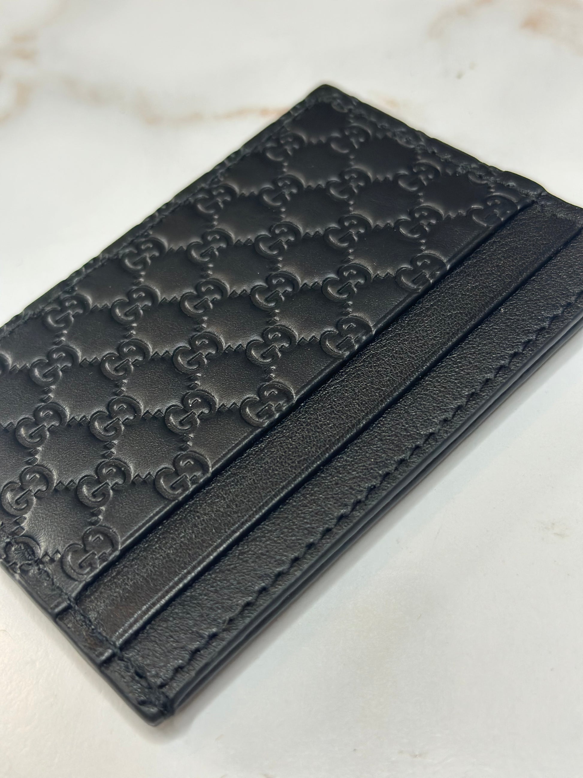 Pre-owned Gucci GG Microguccisima black leather card holder