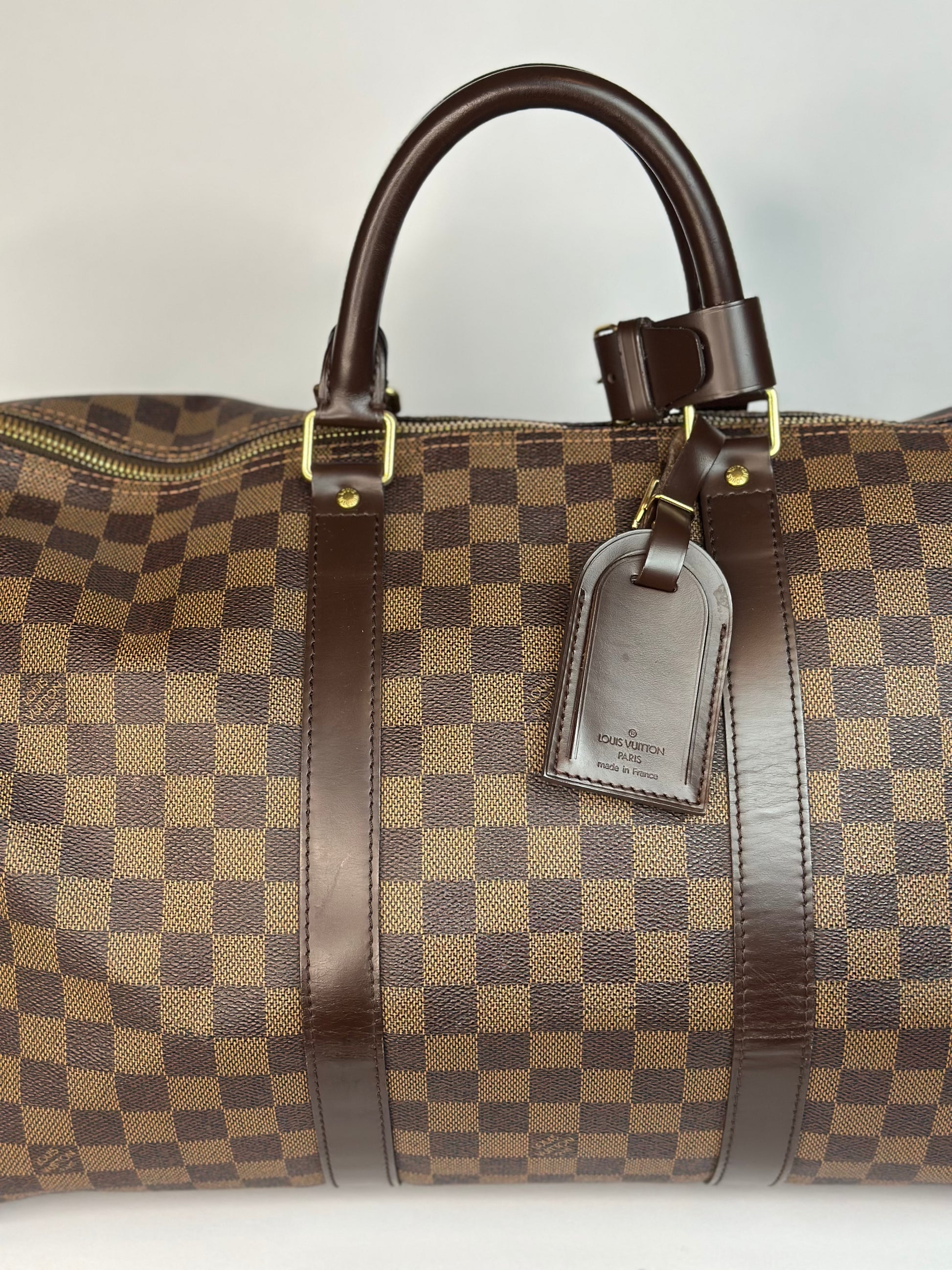 Pre-owned Louis Vuitton Damier Ebene canvas Keepall 50 duffel